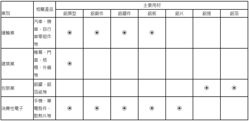 《圖一》台灣鋁產業之主要下游用鋼產業、相關產品及主要使用鋁材
